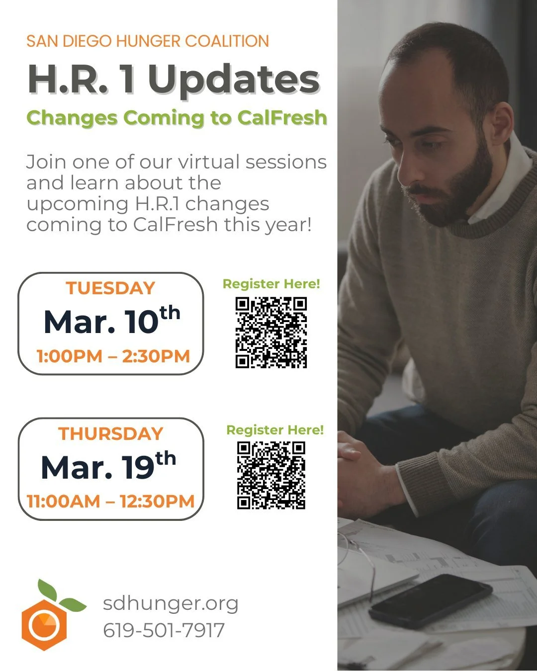 Community-based organizations are invited to join one of our free informational trainings on the upcoming HR 1 changes taking effect later this year.