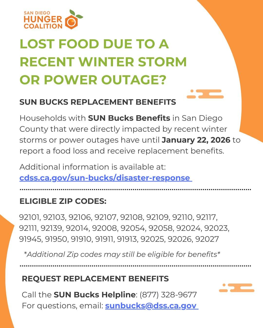 Food Distributions provide shelf-stable staples and fresh foods. They are available to all San Diego residents, and many have drive-thru or home delivery options.