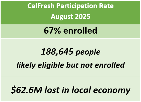 The Hunger Coalition has also identified an additional 188,000 people who are likely eligible for CalFresh but not yet enrolled, showing great potential to reduce the meal gap by increasing CalFresh participation.