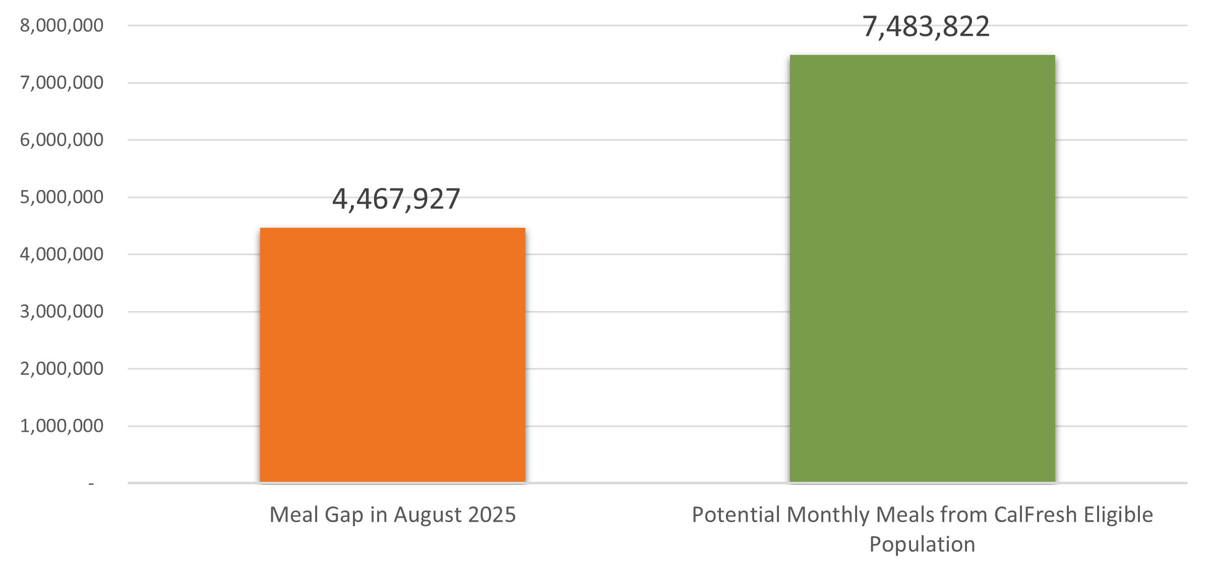 In August 2025, the hunger relief sector in San Diego County provided 29.1M million meals across all programs, meeting 87% of the estimated need for food assistance.